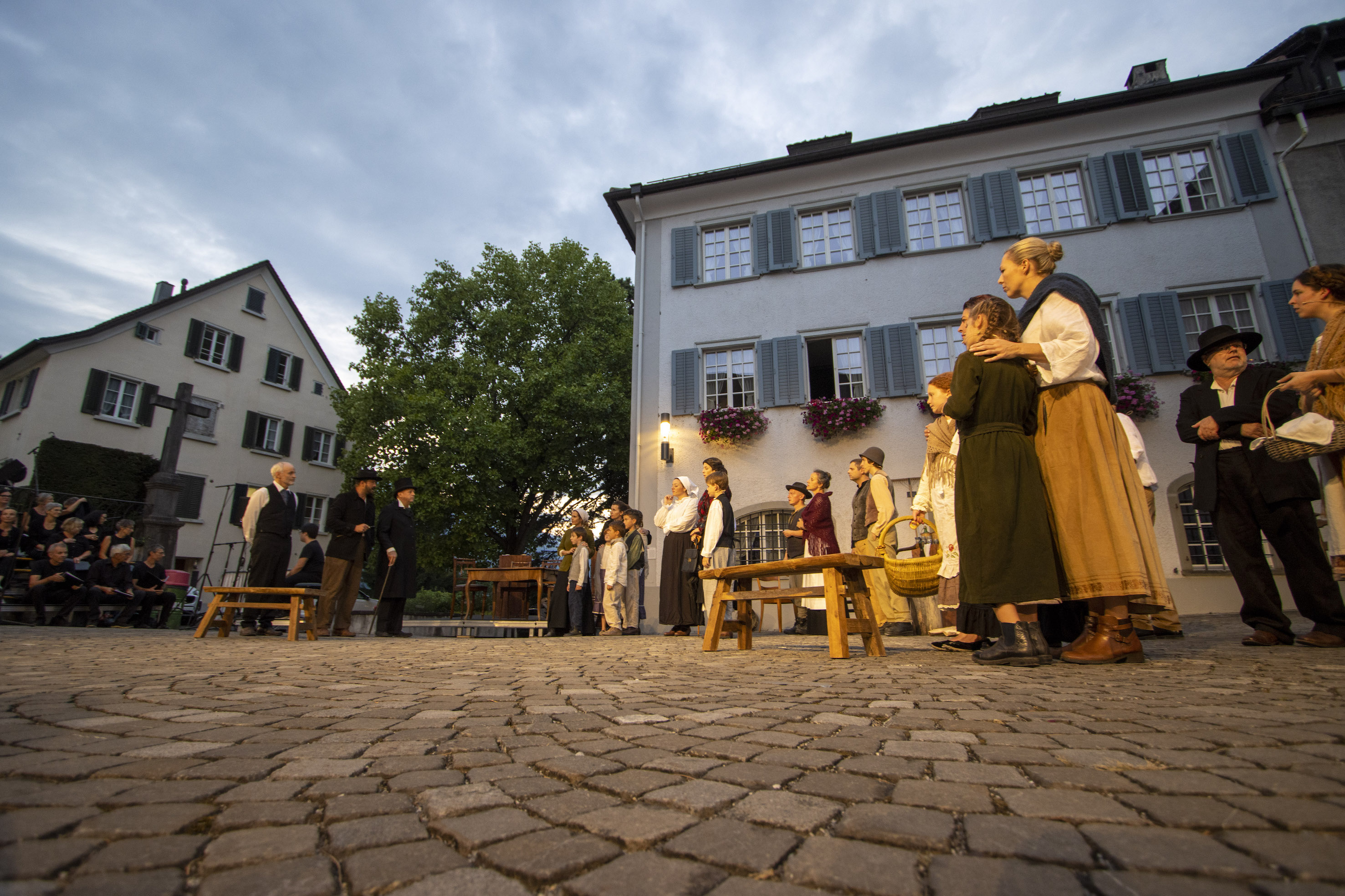 Ein kleiner, gemischter Chor (vorwiegend bestehend aus Cantamos-Mitgliedern) singt diverse Volkslieder, wiederkehrend das Motiv von «Lueged vo Berg und Tal».