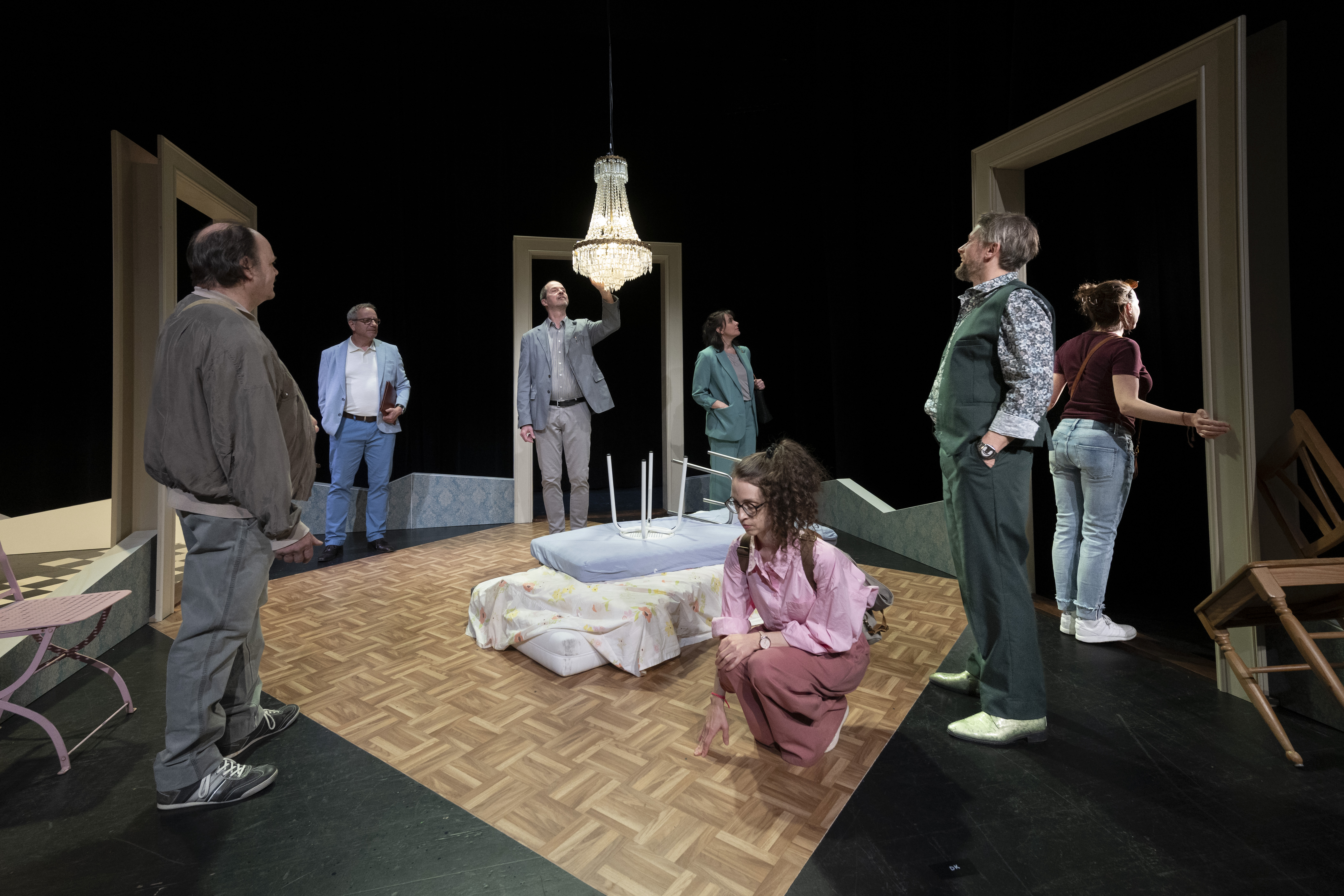 In dieser Situation fallen irgendwann die Masken. In wechselnden Allianzen kommen die Bewerber dem Rätsel um den älteren Wohnungseigentümer auf die Spur. Am Ende stellt sich die Frage: Was ist man bereit für eine schöne und günstige Wohnung zu tun?